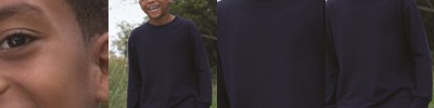 - Light Stone and Classic Navy have contrast inside neckband only.