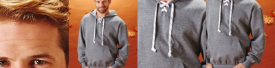80% cotton/20% polyester • 9-oz. • Cross Weave® construction • double layered hood • pouch pocket • hockey style lace front • Sizes: S-2XL