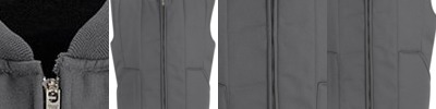 - Lower slash pockets with zip closures