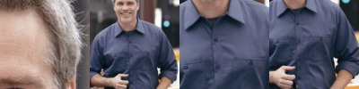 - 65/35 poly/cotton with soil-release finishOpen collar with sewn-in staysMetal collar gripper closureMelamine buttonsTwo button-through pocketsBartacked pencil stall on left pocketBlack