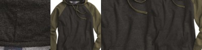- Raw-edge hood opening, pocket seams, cuffs, waistband, zipper placket and side seams